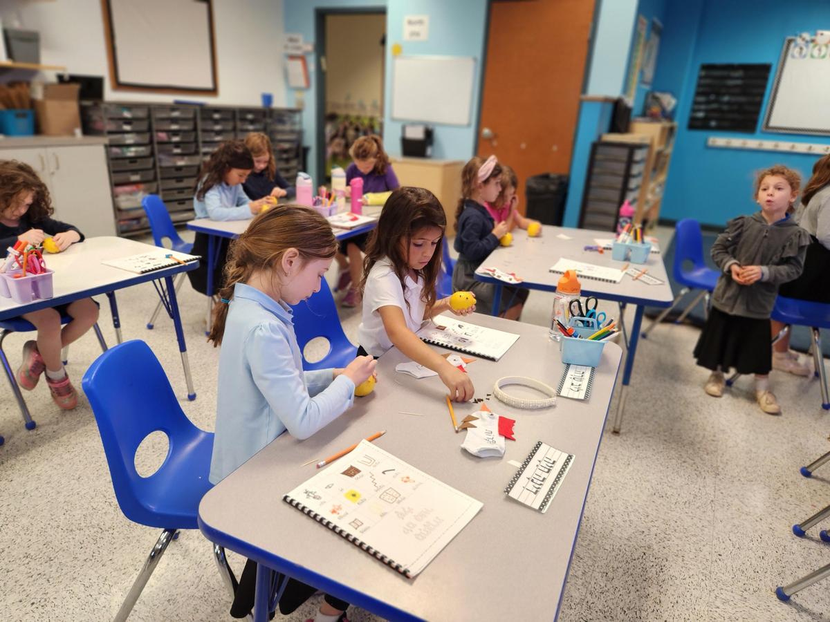 Have you ever heard of a Pomander? It's a tradition to make one before Yom Kippur to help those who are fasting to regain energy through the long davening. To make one you take a lemon and make small holes to add cloves. The smell is very strong! That smell permeated our first grade and second grade classrooms as the students poked holes into lemons and made their own citrus smelling Pomanders for their families for Yom Kippur. The students even had fun making interesting shapes from the cloves including smiles, hearts, and stars. I'm sure the student's parents and siblings who are fasting on Yom Kippur will really appreciate it.