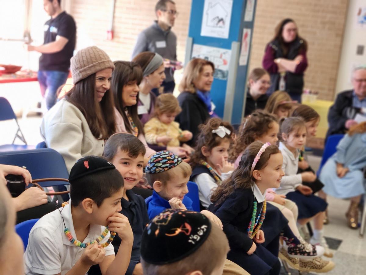 Having guests was incredibly important to Avraham Avinu! After his Bris Milah (Circumcision), even though he wasn't feeling great, he was so sad without guests that Hashem sent him three angels to host. Well, our Kitah K students are working on emulating our forefathers and were thrilled to welcome guests of their own to TDSA! The students welcomed their parents, and uncles. They invited their grandparents and even older and younger siblings. The students worked so hard to make their guests welcome. They offered them comfy seats and food, and most importantly they offered them a good time. After short words of welcome, the students and their guests did a number of fun projects. They made pretty necklaces, both out of beads and yummy fruit loops. They made sculptures from modeling clay, beautiful scratch art and drew wonderful pictures. After getting a chance to do every activity, the students led their guests back to their seats and entertained them with songs, and the story of the Parsha, which the guests themselves acted out. Thank you so much to the Mommies and Daddies who performed the Parsha for the students. Everyone had a wonderful time, and TDSA can't wait for the next time our guests can come visit!