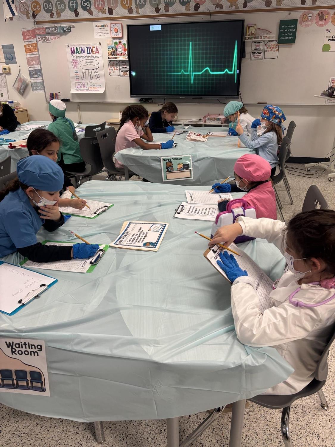 Mrs. Bradberry's second grade has been working on learning what a sentence needs in order for it to be a complete sentence. They first learned that sentences have a naming part and then a telling part, known as a subject and a predicate. Students practiced making sure their sentences had a subject and predicate and were able to identity them. For “Surgery Day” the girls had the opportunity to dress up like doctors and have a whole day dedicated to “performing” surgery on different sentences. They had different stations, station one was math word problems about doctors, station two was picking a subject card and predicate card and “perform surgery” to create a silly sentence, station 3 was looking at a sentence and adding descriptive words to it and station 4 was a writing activity. The girls had a blast working with their new writing skills!