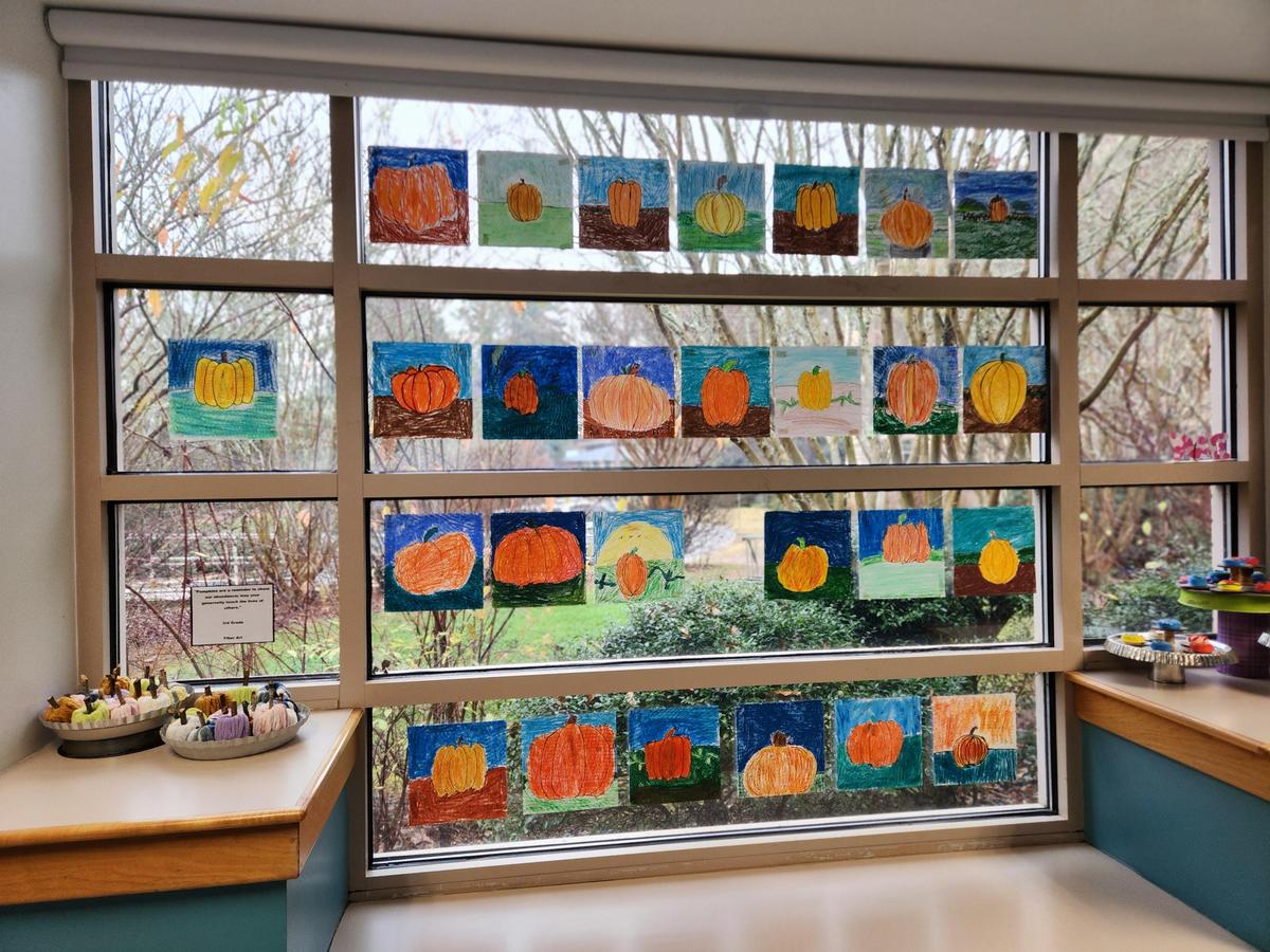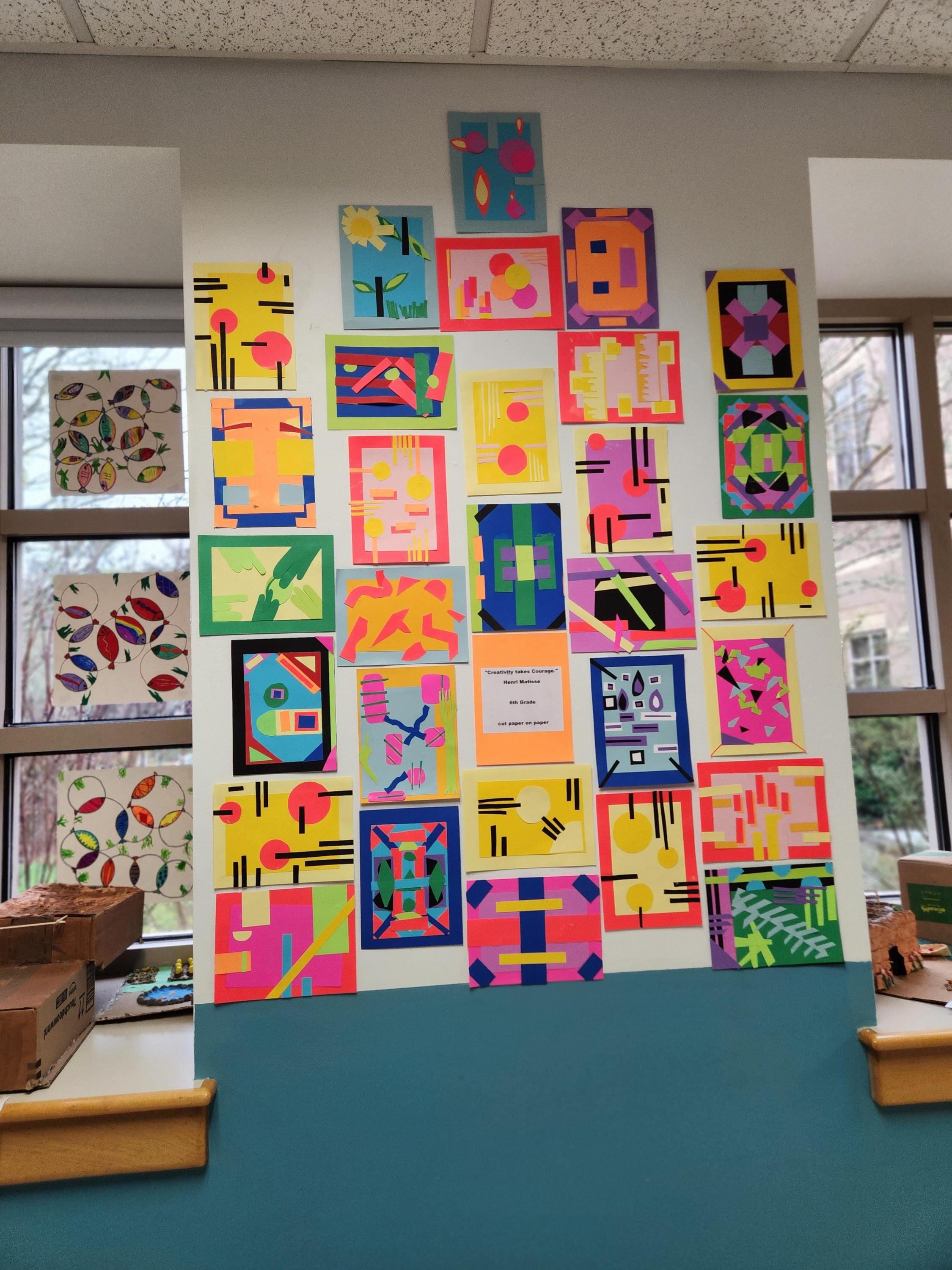 Can you find your art? Students at TDSA enjoy seeing their artwork decorating the hallways. It's always a fun little scavenger hunt to see if you can find your piece of art and it fills the students with so much pride. Right now on display in the halls of TDSA are papier-mache food created by our eighth grade students and yarn owls and pumpkins created by our first and third graders. Drawings made with pastels, markers, colored pencil and other mediums decorate the walls and windows. The sixth grade even did an artist study on Henry Matisse and re-created his art style using cardstock.