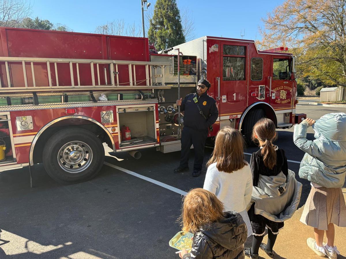 Nothing beats the excitement of a fire-truck visit! TDSA’s students were visited by one of the trucks from Dekalb County Fire and Rescue. The visiting firefighters provided a lot of amazing information and visuals. They showed off all the gear they usually use, discussed how calls come in and are screened and shared the kinds of information they find out before going to any building to fight a fire. Did you know that firefighters find out if they’re responding to a home, school, or business before even arriving. There’s also a number of safety measures that firefighters take to ensure their own safety in a rescue event including a panic button that registers lack of movement and alerts other firefighters that they may need help. Among the highlights of the trip was the gear race between two firefighters to see who can gear-up faster, and climbing aboard the firetruck to see their gear and feel it!